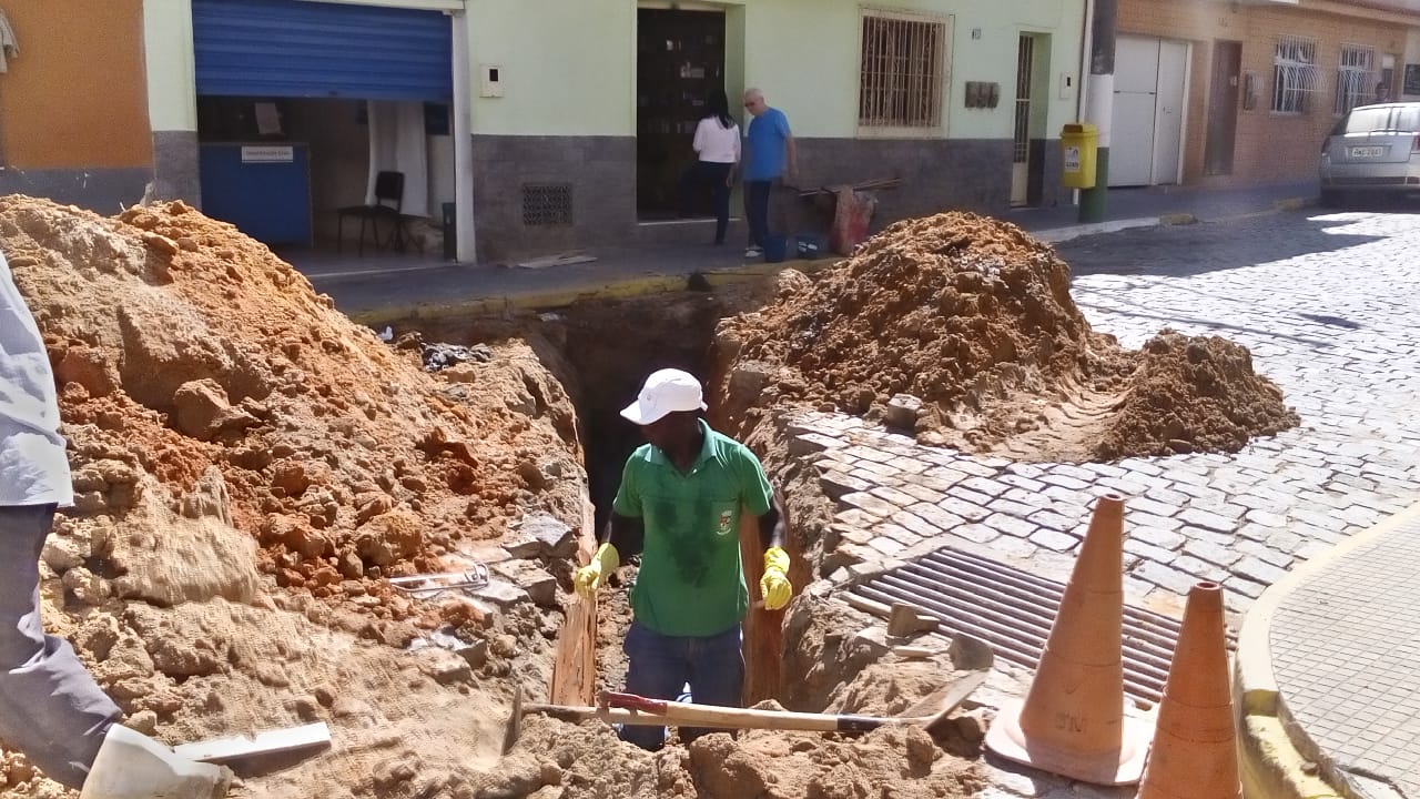Na Rua 10 de Junho, próximo a Câmara Municipal, foi realizado a manutenção e ligações de rede de esgoto, a via ficou paralisada para o trafego de veículos na parte da amanhã enquanto funcionários efetuaram a troca da rede e também conservação dos canos.