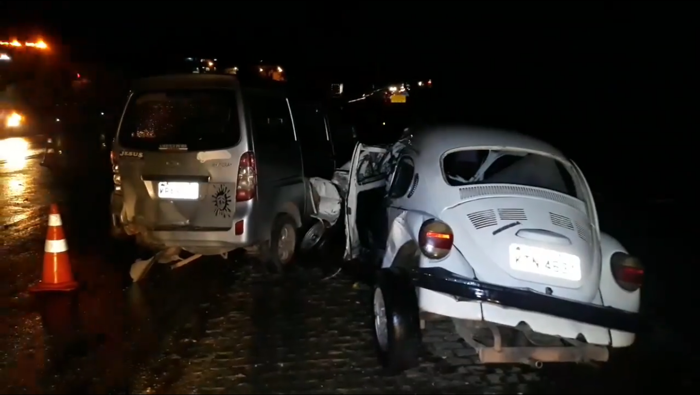 fusca foi arremessado no acostamento contra outro veículo que estava aguardando