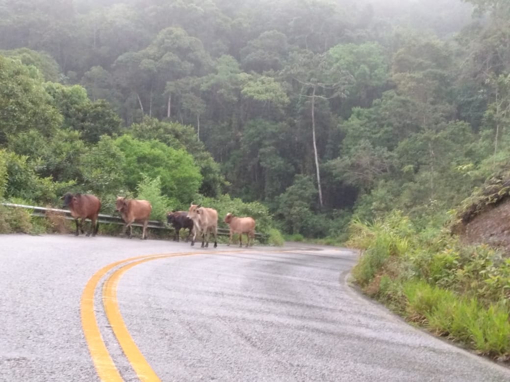 animais soltos. Essa rodovia que corta a Zona Rural de Sumidouro é repleta de