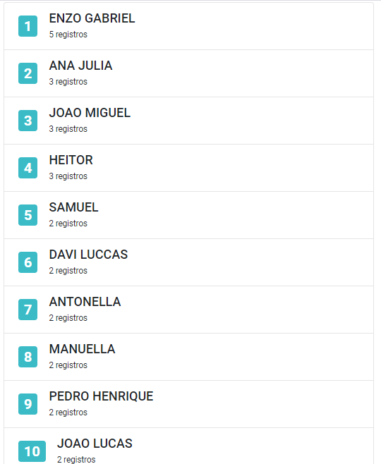 registros. Enquanto as meninas, o nome Ana Júlia foi escolhido 3 vezes. Nomes