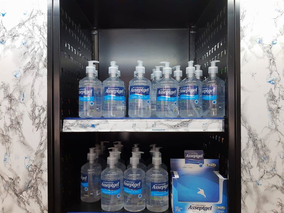 constatamos a mesma realidade. O álcool em gel desapareceu. Uma funcionária da