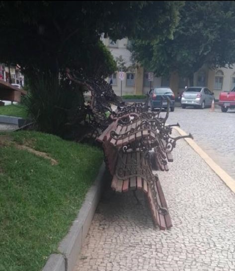 Medida drástica: Retirada de banco da Praça Governador Portela no Centro de Duas Barras foi muito elogiada nas redes sociais.