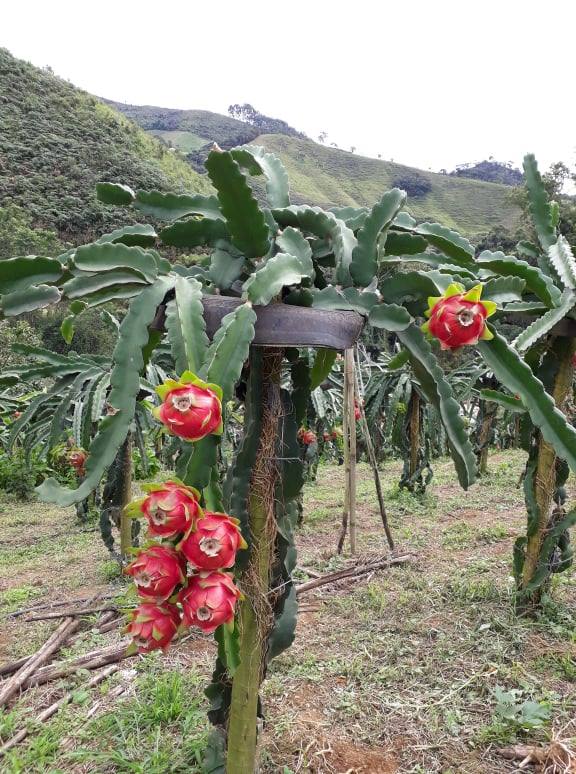 Em cada cova foram plantados dois pés de pitaia. Clima e altitude favoráveis na zona rural de Sumidouro aumentam a produtividade da fruta.