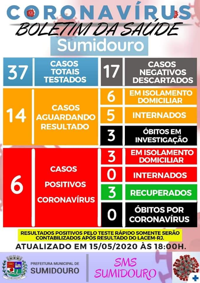 isolamento domiciliar. Infelizmente o boletim da Secretaria de Saúde de Sumidouro