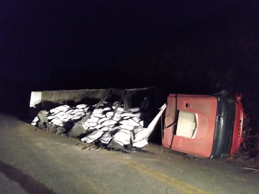 Repórter Panorama: Terça-Feira (01/09/2020) – A nossa equipe de reportagem flagrou no inicio da noite de hoje um tombamento de uma carreta carregada de rações e grãos que iria descarregar no município de Sumidouro. O fato ocorreu por volta das 19h e os populares que testemunharam o fato, disseram que a carreta teria apresentado um mal funcionamento no sistema de freios e com o ocorrido, o motorista perdeu o controle do veículo que tombou no quilômetro 3 da RJ 156, nas proximidades da localidade de Fazenda das Flores. O mesmo estaria vindo da Região Metropolitana do Rio de Janeiro. O Serviço de Pronto Atendimento (SAMU) foi acionado para atender a ocorrência e chegando ao local, o ocupante da carreta não requereu o atendimento, pois apesar do grande susto, feriu-se sem gravidade. A carga estava sendo retirada gradualmente e pela carreta estar no início de um trecho de grande declive e próximo a curva, solicitou-se a presença da Guarda Civil Municipal para fazer a sinalização do trecho, pois não existe iluminação pública no local. Esse local comumente é palco de outros acidentes em anos anteriores que vitimaram condutores e causaram prejuízos materiais. O próprio traçado sinuoso ao longo dos 18 quilômetros da RJ 156 e a diferença de aproximadamente 650 metros de altitude entre o seu ponto mais alto na entrada da localidade da Balança até o Centro de Sumidouro fazem com que todos os motoristas redobrem a atenção e utilizem-se com segurança do sistema de freios para evitar aquecimento das lonas. Nessa situação de hoje, ficou o dano material, e por sorte o condutor da carreta saiu com ferimentos sem gravidade.