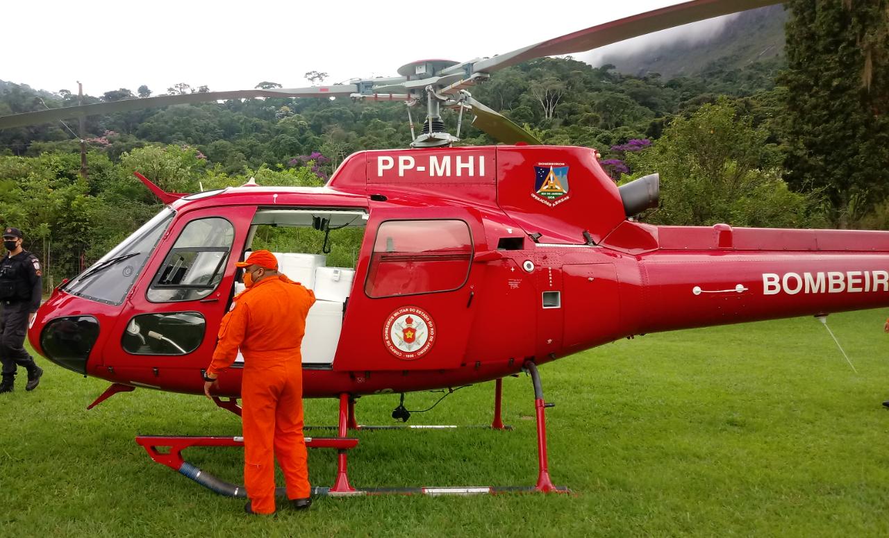 do Corpo de Bombeiros que aterrisou no município de Teresópolis.