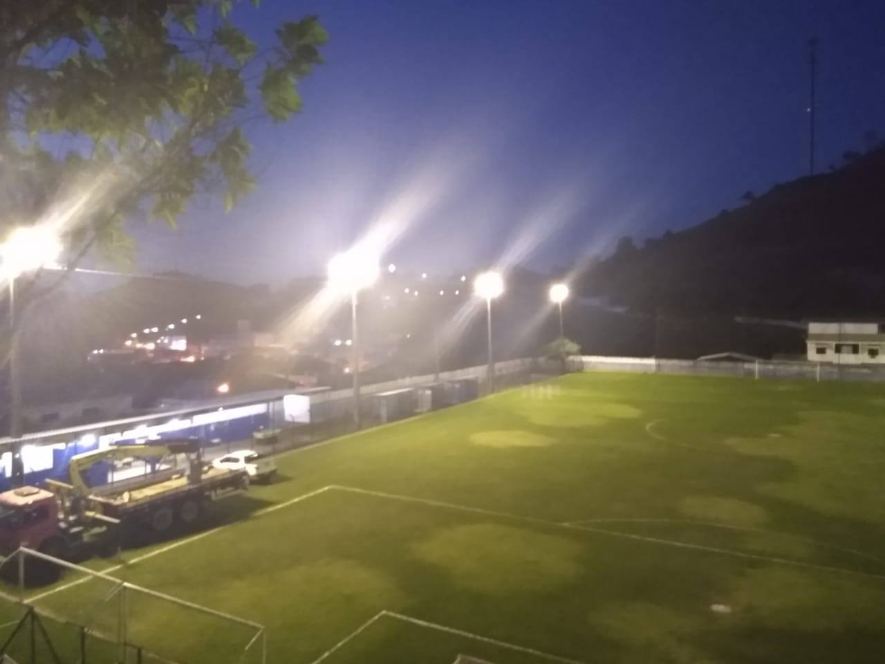 Após anos sem iluminação funcionando corretamente, Estádio Municipal Paulo Freitas recebe revitalizações com troca de 32 lâmpadas.