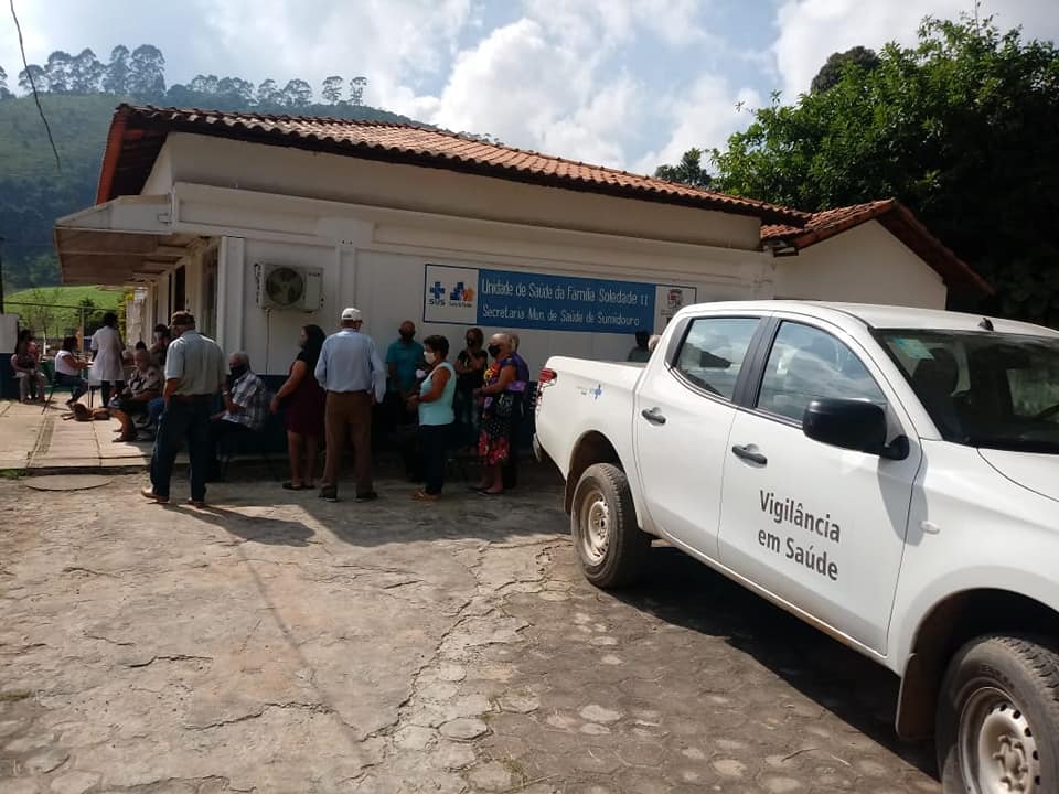 Agentes da Vigilância Epidemiológica de Sumidouro vacinam idosos acim...